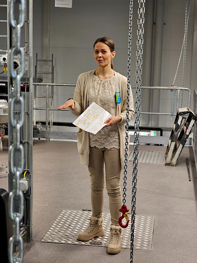 Kuva 2. Vesihuoltopäällikkö Anne Ruotsalainen Järvi-Saimaan Palvelut Oy:stä esittelee uuden vedenpuhdistuslaitoksen prosesseja. Laitos tehostaa vedenkäsittelyä sekä ravinteiden poiston että hygieenisen laadun osalta, mikä parantaa merkittävästi puhdistetun veden laatua.