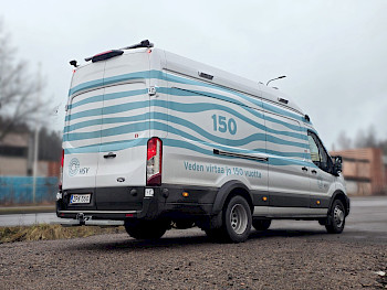 HSY:n uusiin pakettiautoihin on teipattu juhlavuoden ilmettä. (Kuva: HSY)